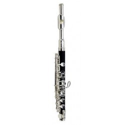 Con cuerpo hecho de resina y sistema de Mi partido, esta flauta piccolo recrea un sonido dulce de gran brillantez, como es el sello de la casa auspiciada por Conn-Selmer. Su juego de llaves va en acabado plateado, en tanto que sus zapatillas están fabricadas con piel de doble costura; su tope es de corcho natural. Detalle de la casa: el estuche de madera (a la francesa) que se incluye en la compra